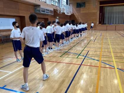 5月8日、雨で校庭が使えませんでしたが、体育館で学年体育を行いました。