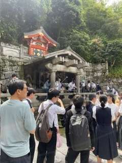 行動班ごとに、京都市内を自分たちの予定に基づいて見学をしています。清水寺はやはり早い時間からバスがたくさん停まっていてたくさんの人で賑わっています。気温も上昇してきました。水分補給など体調管理に留意してください。