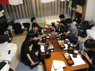 当宿舎自慢の特製ハンバーグを、とても美味しくいただきました。