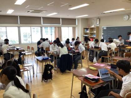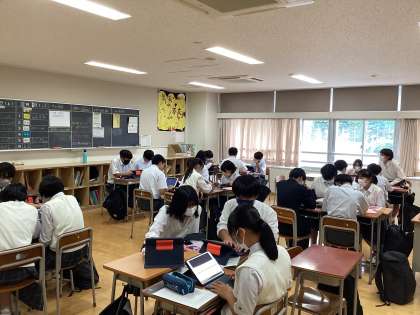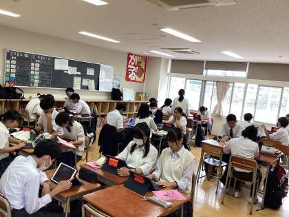 修学旅行、体育祭が終わりました。これからは、「古都の魅力を発信」をテーマに1日観光ツアーを作成し、企画を発表していくことになります。各クラスで班ごとに発表資料を作成している様子です。
