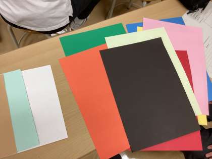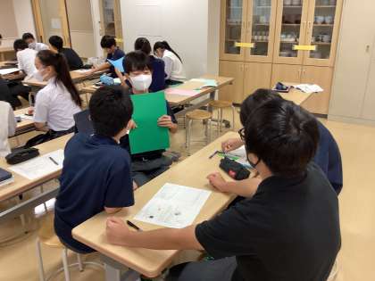画用紙を使いながら、自分に似合う色探しをグループで行い、服のコーディネートを考えます。