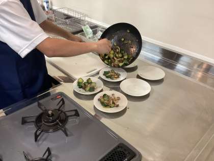 本日の実習は、「きゅうりとしめじの炒め物」でした。