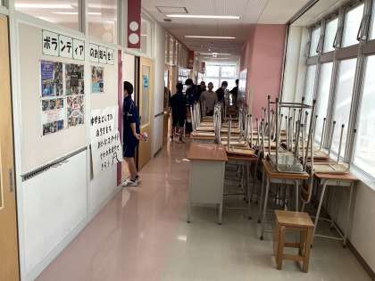 その後、教室や特別教室、玄関などを日頃の感謝の気持ちを込めて掃除しました。