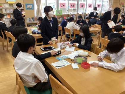 自身のおすすめ本を紹介する「ビブリオバトル」をクラスごとに図書室で実施しました。