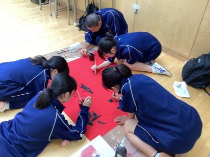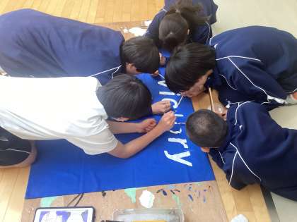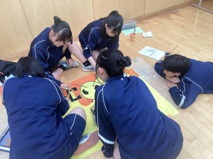 体育祭に向けて、クラス旗を製作しています。どのクラスもまもなく完成です。