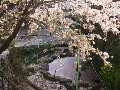 校舎改築のため今年で最後となる中庭の桜が満開になっています。