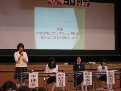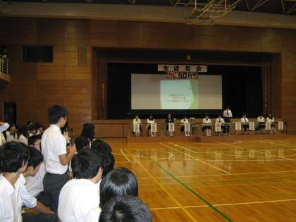 10月5日(金)の6校時に、後期生徒総会が行われました。先日の役員選挙を機に新しくなった生徒会役員、専門委員長が初めて中心となって運営する生徒総会でした。生徒会や各専門委員会の後期活動方針案について、パネルディスカッション形式の活発な議論が繰り広げられました。この生徒総会は、生徒それぞれに芦花中学校のこれからを考える大切な機会となりました。