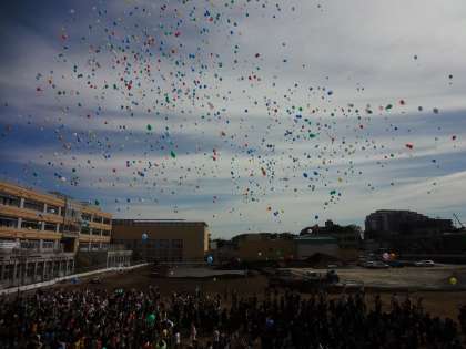 10月13日(土)の「50周年 児童・生徒式典」の第二部にて、「バルーンセレモニー」を行いました。