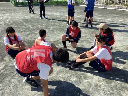 来週に控えたマラソン大会に向けて、体育では長距離走の練習を行っています。ただ走るだけでなく、タイムの近い人でグループを組み、話し合いで内容を決めて、練習に取り組んでいます。
