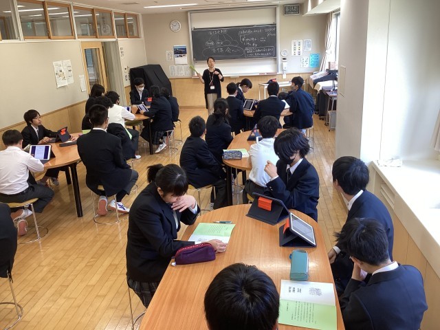 生徒総会に向けて学級討議を行いました。議案書を集中して読んで、質問することなどを考えました。