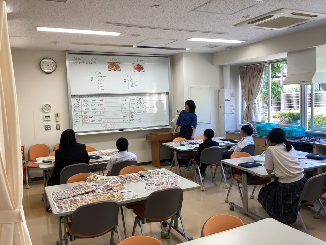 数学の時間では、スーパーのチラシで食材の値段を調べ、どちらの料理が安く作れるかを調べました。思いがけず高い食材に驚いたり、食材の値段を知ったりする体験ができました。