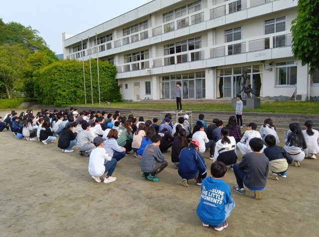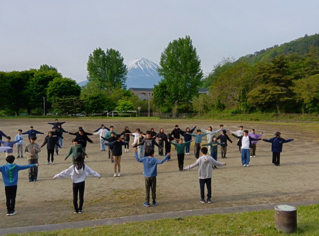 最終日の朝をむかえました。雄大な富士山が、芦花中学校1年生の出発を見守ってくれています。6時に起床し、まだ眠そうな人生徒もたくさんいますが、体操と朝食でしっかりリズムを整え、今日も安全、健康に留意しながら、素晴らしい1日にしていってほしいと思います。実行委員からは、お世話になった方々への感謝の気持ちを言葉で表しましょう、というお話がありました。