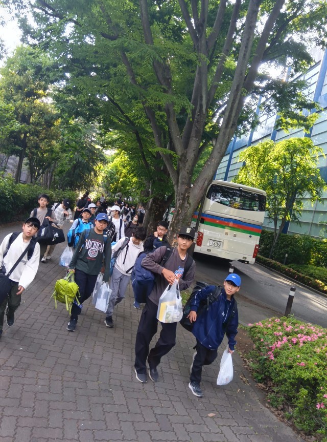 16時36分、バスが文学館前に到着しました。解散式では、実行委員より、この移動教室を振り返って、Greenのスローガンの達成に向けて、1人ひとりが成長できたことや、今回得たこと、学んだことを明日からの学校生活に生かし、さらに良い学年にしていこう、という話がありました。