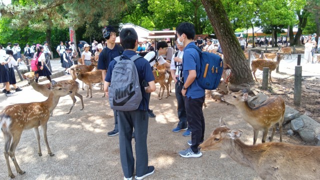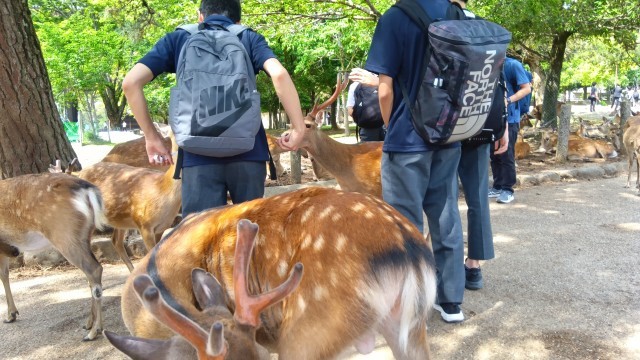 大仏殿の後に奈良公園にて鹿と、しばしたわむれました。