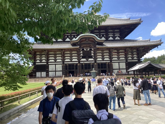 昼食を食べ、次の見学地である東大寺に行きました。想像を超える大仏の大きさと鹿の多さに圧倒されました。
