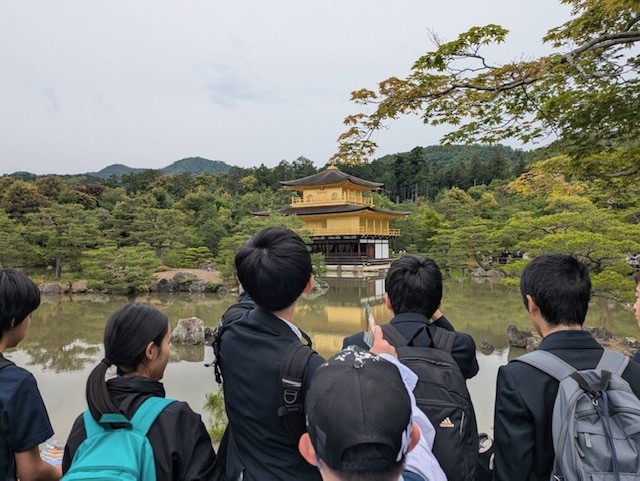 鹿苑寺は外国人観光客だけでなく修学旅行生にも人気です。