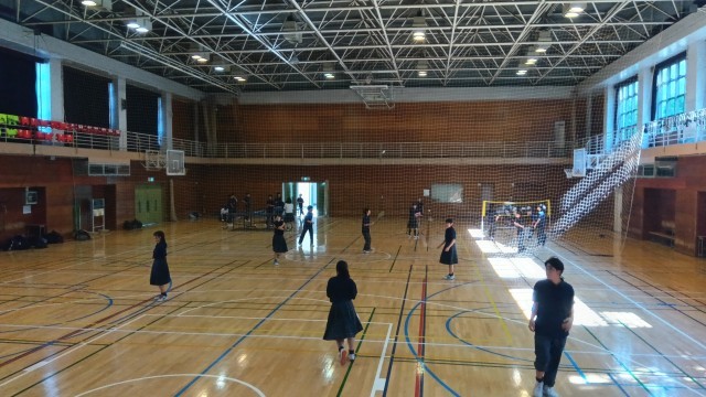 各々、バスケットボール、バドミントン、卓球、ピンポン玉とペットボトルバットでの野球、カードゲームなど好きなことをして過ごしていました。