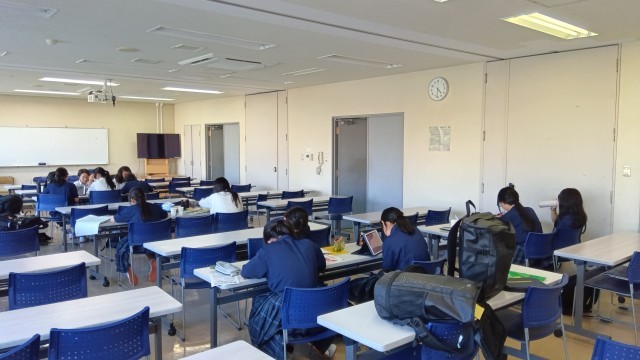 また、ミーティングルームには学習スペースを設け、試験前ということもあり、学習している姿も見られました。