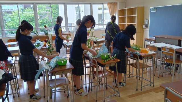 いい匂いが流れてくる校舎内では、STEP生け花と読書部も活動していました。
