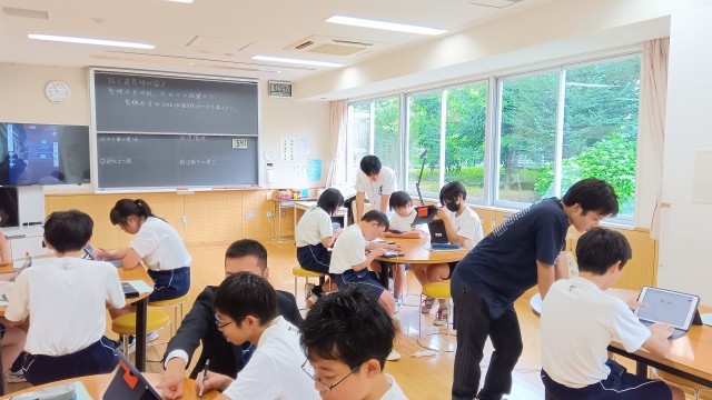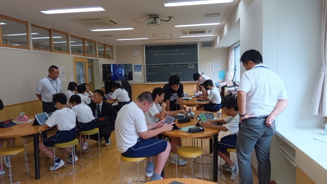 3校時 I組、社会科の先生の研究授業がありました。飛鳥時代についての授業です。個別に調べ、班ごとに発表です。みんな頑張っています。