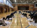 1年生の席書会が行われました。 会場の体育館は静寂に包まれ、集中して真剣に筆を走...