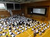 6月15日に小中合同朝礼とセーフティー教室が行われました。 小中合同朝礼で...