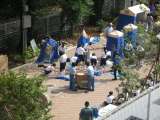 消防隊員の方に怪我などで出血をしている人への「止血法」を教えて頂き、実際に三角...