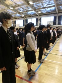 令和8年度初の生徒会朝会です。いつもなら教室で朝読書をしている時間に体育館で8時...