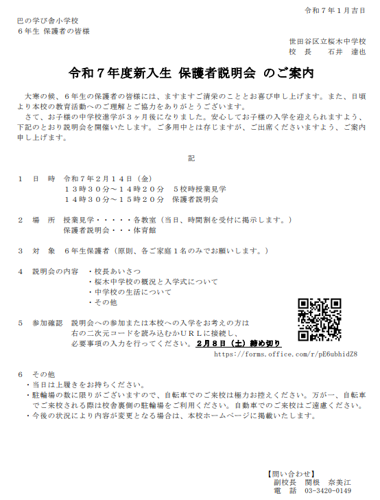 詳細はこちら(R7年度入学小学生保護者説明会案内)