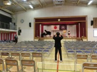 卒業式当日の朝、3年生の登校時間はいつもより遅いのですが、指揮者や伴奏者は9時前にはすでに体育館で最後の調整に余念がありません。最後の最後まで全力を出す姿勢。今年度の3年生を象徴しています(菅野)
