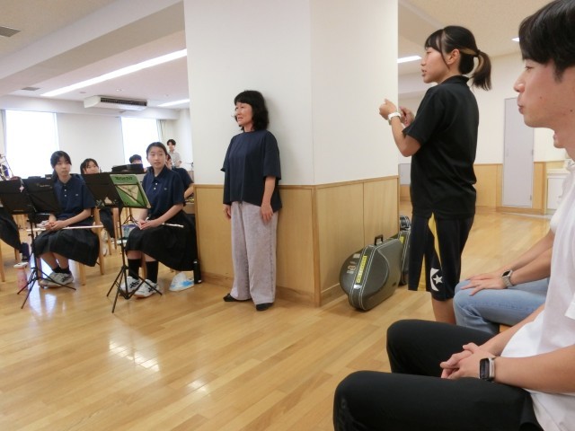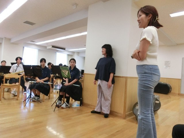 吹奏楽部の夏 3 公開日 2025/07/29 更新日 2025/07/29 今日のできごと 練習の最後には、職員室にいる先生方に来ていただき、本番で演奏する曲を聞いていただきました。ひとりひとりの先生方からうれしいお褒めのコメントをいただき、部員たちの表情がほころんでいるのがわかります。本番まであと少し。今までの練習成果を全て出しきれるよう、最後の調整を全力で取り組んでくださいね(菅野) いいね(6) 部活(文化部)