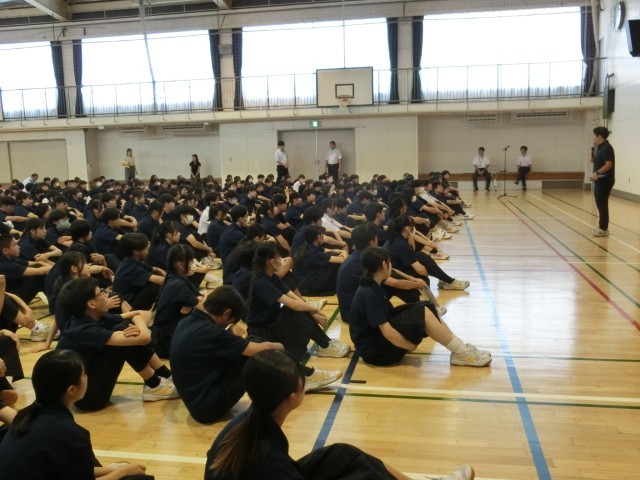 2学期が始まりました。相変わらずの猛暑ですが、体育館には元気な生徒の姿がありました。以下、校長先生の講話の内容です。