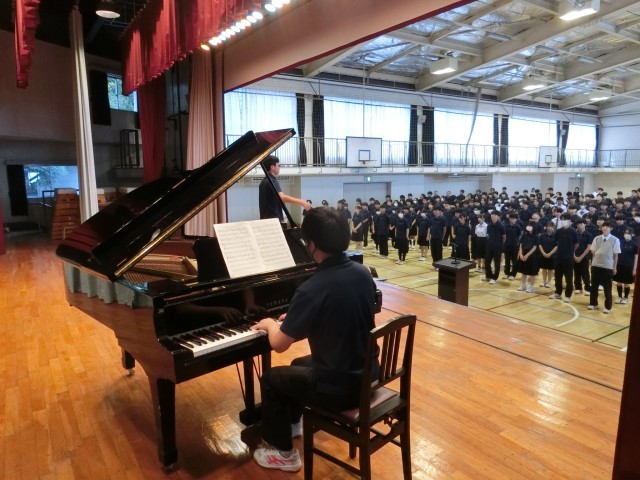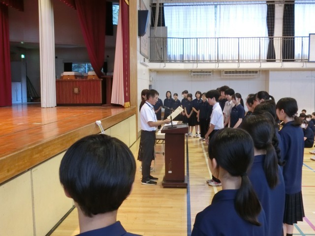 校歌 そして Gold! 公開日 2025/09/01 更新日 2025/09/01 今日のできごと 校歌に続き、この休み中の部活動の表彰がありました。吹奏楽部が毎年出場している東京都中学校吹奏楽コンクールでは今年、なんと!Gold金賞を受賞しました(菅野) いいね(6) 行事 部活(文化部)