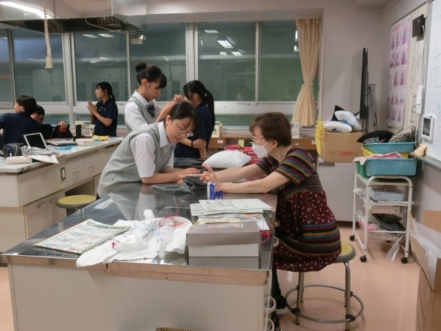 家庭科室に行くと、前の教卓付近に全員が集まっています。先生の指示を聞いているようです。こういう時にきちんと集まっていられるのは、当たり前のようですが、ふざけることなく聞けることは素晴らしいことです(菅野)