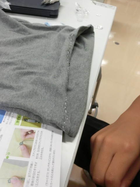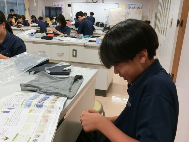 「裁縫には自信がある」と語っていた男子生徒。確かに細かいステッチが刻まれています。完成が楽しみです!(菅野)
