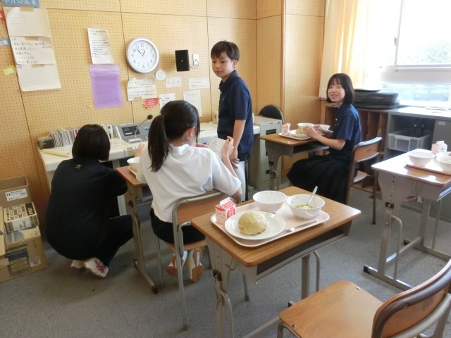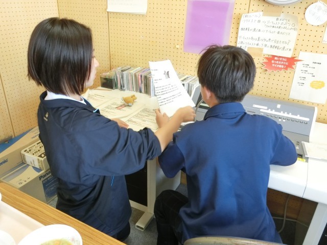 昼の放送室 公開日 2025/09/17 更新日 2025/09/17 今日のできごと お昼の放送を担当している放送委員会。‘カメラ’があまり入らない部屋のせいか、ちょっとびっくり…。しかし、すぐに今日の給食メニューを読み上げる準備に入ります。3年の先輩が、緊張する後輩を優しく助ける姿に感動!(菅野) いいね(2) 生徒会