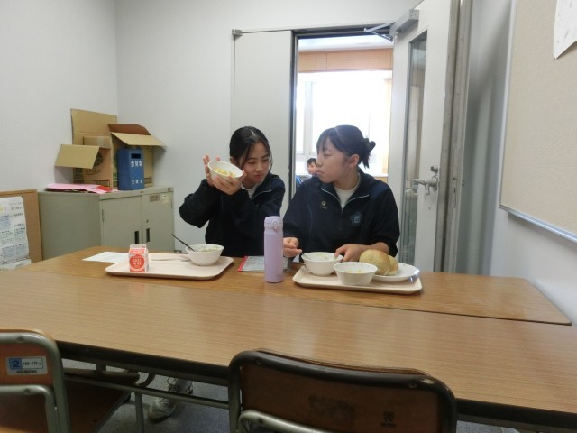 青春の一コマ 公開日 2025/09/17 更新日 2025/09/17 今日のできごと 放送室は狭いため、2年生の委員は給食をお隣の生徒会室で食べています。給食の美味しさと青春の楽しさを素直に表現してくれました(菅野) いいね(2) 生徒会