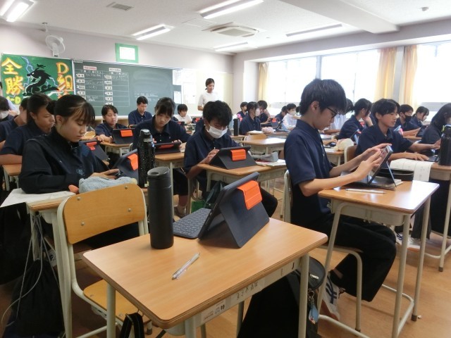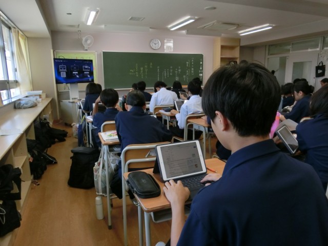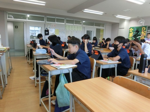 移動教室を終えた1年生の授業です。さあ、宿泊行事をやり終えた成果は出ているでしょうか(菅野)