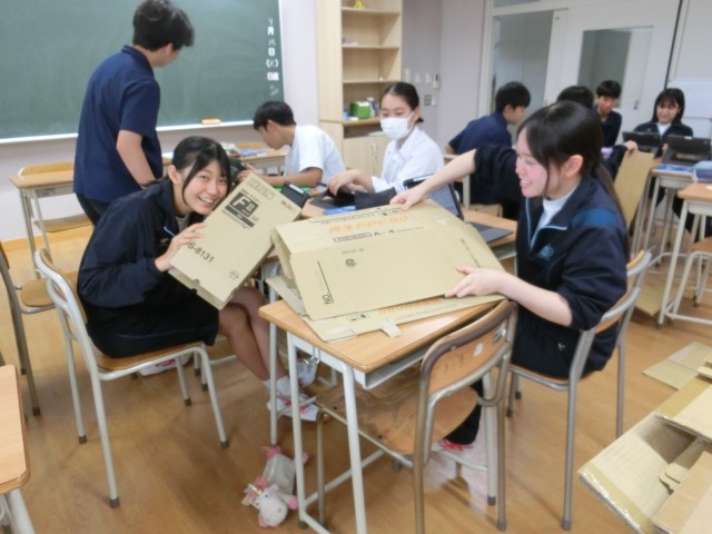 段ボール搬入 公開日 2025/09/19 更新日 2025/09/19 今日のできごと 英語科の先生から段ボール搬入の要請があり、リサイクルに出す予定のものが急遽、英語科少人数教室に運び込まれました。英語と段ボール?どうやらグループ学習発表会の小道具づくりの原材料として使われるようです(菅野) いいね(2) 授業 3年
