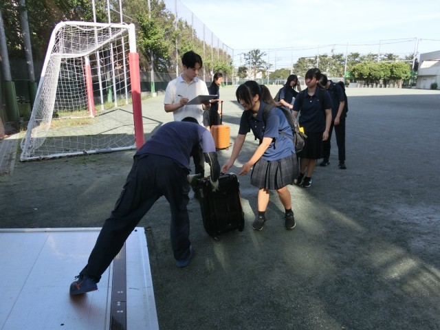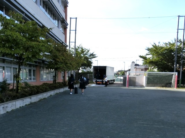 荷物は北陸へ 公開日 2025/09/22 更新日 2025/09/22 今日のできごと 今朝8時前の桜木中校庭にはトラックが来ていました。修学旅行に持っていく大きな荷物を運ぶためです。3年生が続々と集まってきます。「タグはつけていますか」と先生に言われ、慌てて予備のタグに記名をしてつけている生徒がことのほか多くいました。今なら大丈夫ですが、旅先で忘れ物をしないようにしてください。特にお土産はね(菅野) いいね(4) 行事 3年