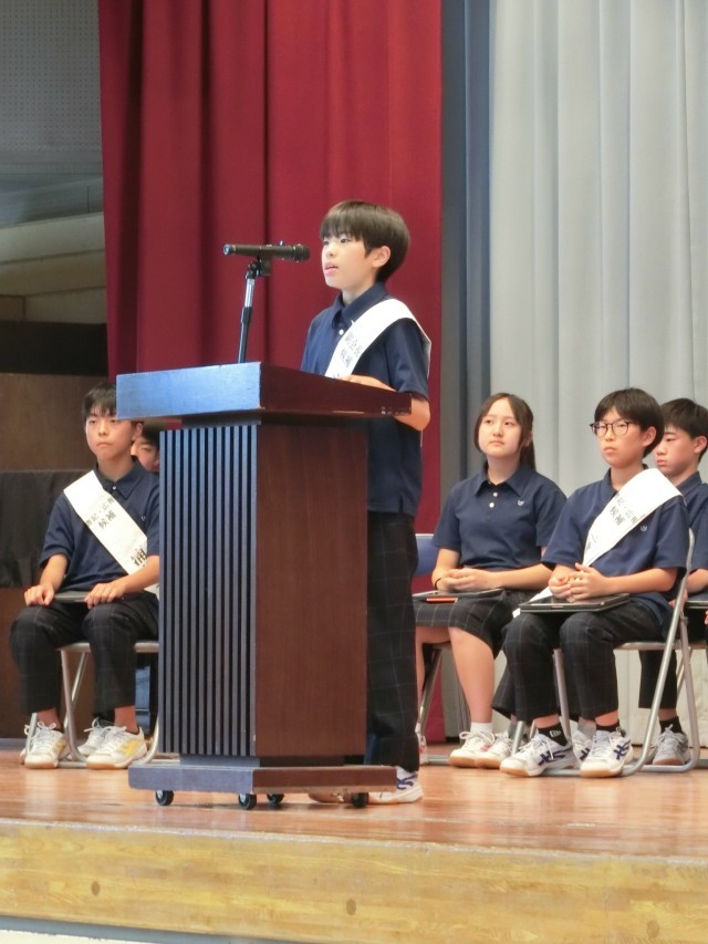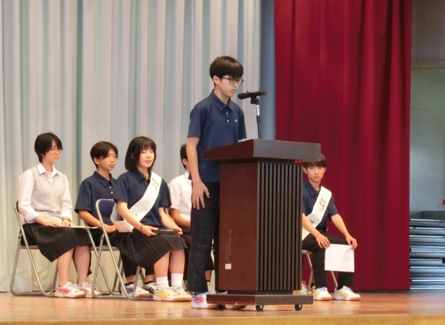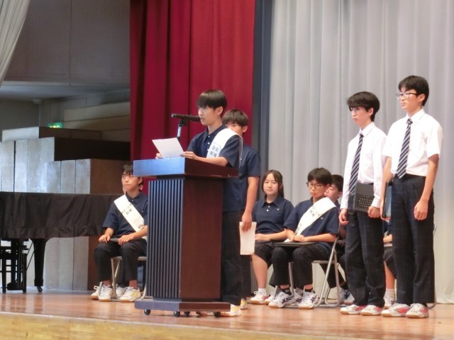 昨日行われた生徒会役員選挙の立会演説会の様子です(菅野)