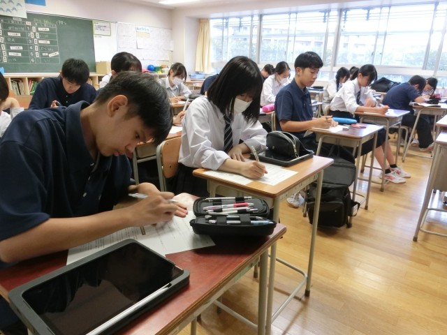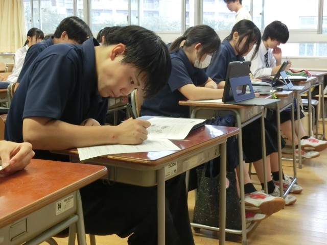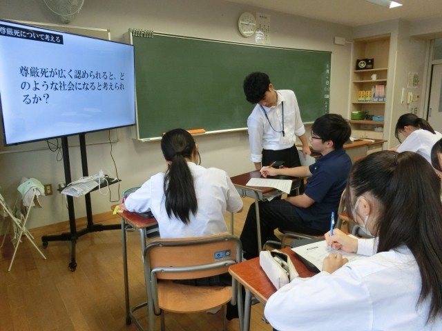 3年生は尊厳死をテーマにした題材を扱っていました。生徒の表情も思わず真剣になります(菅野)