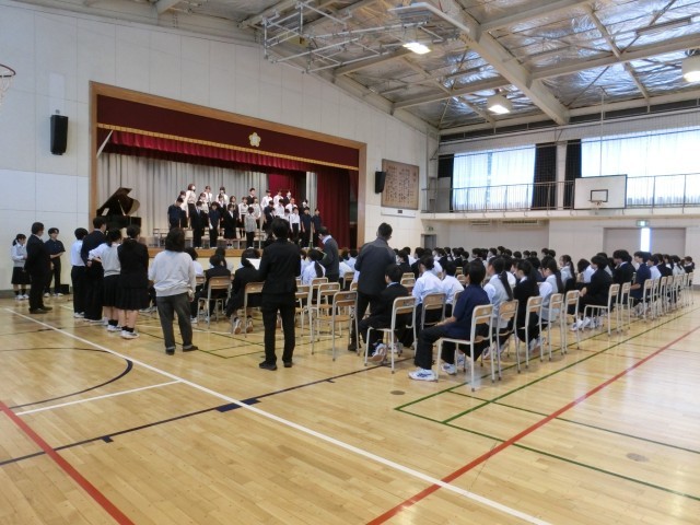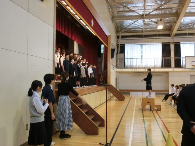 本番は明後日 公開日 2025/10/23 更新日 2025/10/23 今日のできごと いよいよ明後日に本番を迎える合唱コンクール。今日は体育館で学年ごとにリハーサルが行われています(菅野) いいね(1) 行事 1年