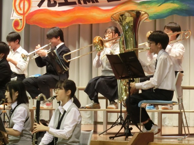 学芸発表会 吹奏楽部1 公開日 2025/10/28 更新日 2025/10/28 今日のできごと 学芸発表会のトリを飾るのが吹奏楽部です。夏に行われた都の中学校吹奏楽演奏会では見事にGold金賞を受賞しました。今回はその受賞曲も聞くことができました(菅野) +3 いいね(3) 行事