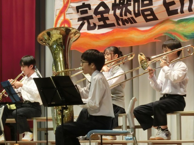 学芸発表会 吹奏楽部2 公開日 2025/10/28 更新日 2025/10/28 今日のできごと これをご覧になっている方へ。吹奏楽部の見事な演奏が画面越しに聞こえてきたらきっとそれは素敵な感性の持ち主である証拠です。大切になさってください(菅野) +2 いいね(2) 行事