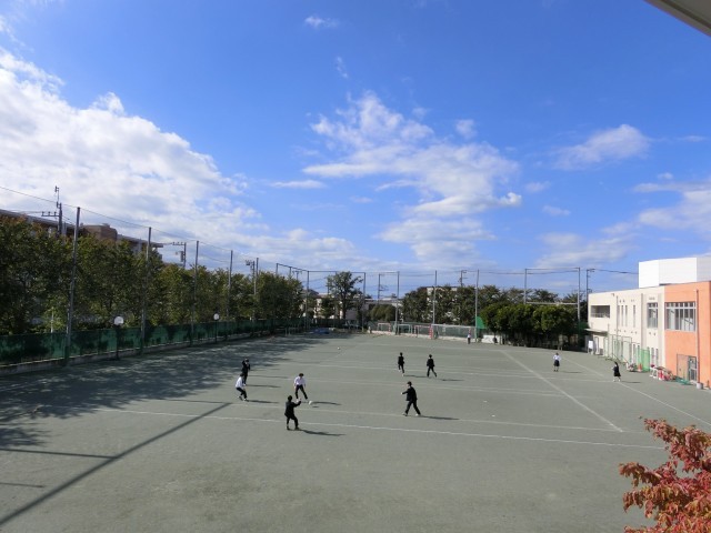 昼休みの様子です。まさに秋晴れの校庭ですが、今日は学年閉鎖という事もあり広い校庭には数えるほどの3年生の姿しかありません。ですが、元気に遊ぶ声がいつも以上に職員室まで届いていました(菅野)