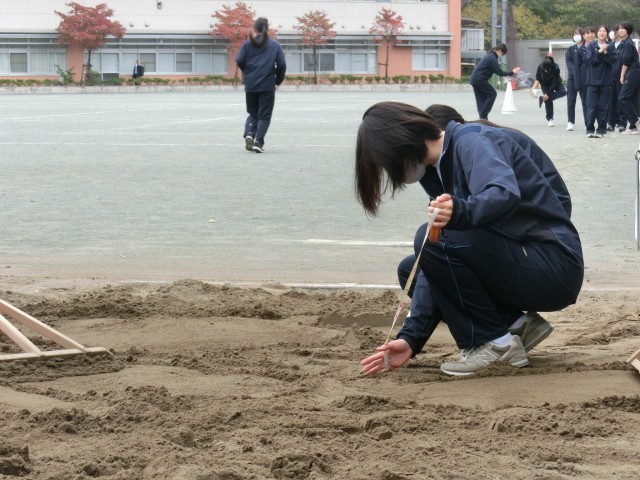 協力する気持ち 公開日 2025/10/31 更新日 2025/10/31 今日のできごと 着地した後の地ならし、跳んだ距離を計測する仕事、そしてあとかたずけ。体育の授業では、着替えの時間を前後に確保しなければならないため、みんなの協力態勢がなによりも大切になります。今日の授業でも、自分の跳躍の番が回ってくるまで持て余す時間があっても、遊んでいる生徒がいません。この‘あたりまえ’の事が日常になってる桜木中はやはり素晴らしい学校です(菅野) いいね(2) 授業 3年