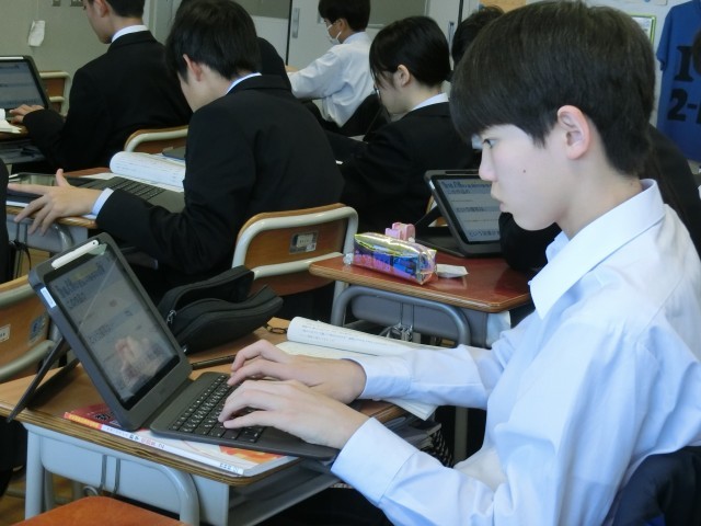 スタイルは様々 公開日 2025/11/07 更新日 2025/11/07 今日のできごと 教科書を机に広げながら文章作成をする生徒も入れば、デジタル化された教科書とワークシートを同一画面に広げている生徒もいます。表現や文はみんなで共有します(菅野) いいね(1) 授業 2年