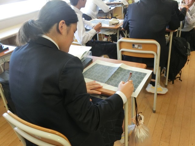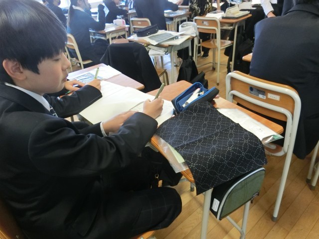 刺し子のテトラポーチを作ります。まずはデザインから(菅野)