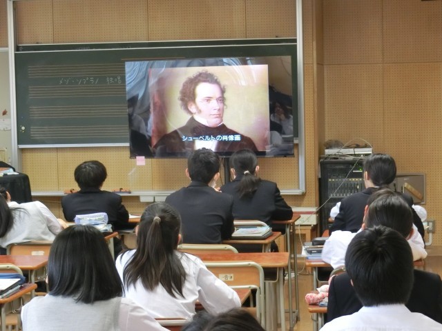 シューベルト鑑賞 公開日 2025/11/11 更新日 2025/11/11 今日のできごと 1年生音楽はシューベルトが作曲した曲の鑑賞をしています。給食の後なので、子守歌に聞こえていた(?)生徒も何人かいたようですが、皆きちんと感想や気付きを書いていました(菅野) いいね(1) 授業 1年